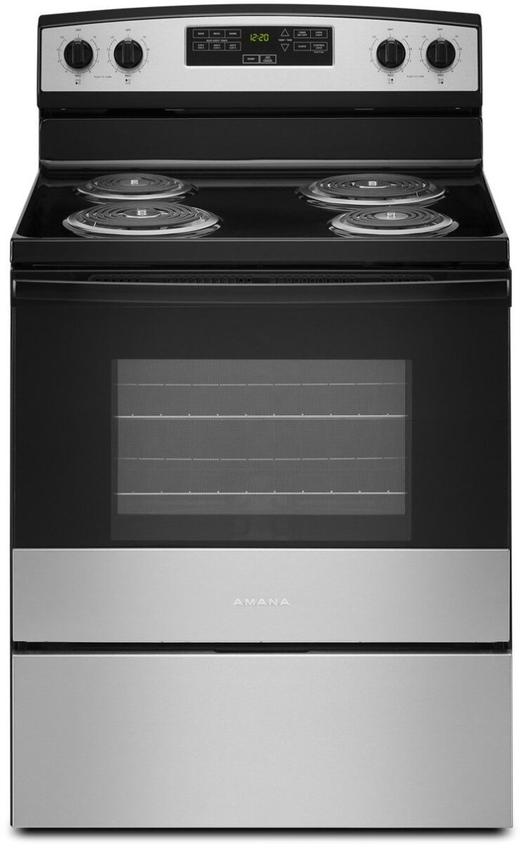 **Scratch & Dent Appliance Notice: Our scratch and dent appliances offer great savings on top-quality brands. While they may have minor cosmetic imperfections or arrive without original packaging, these do not affect performance or reliability. Every unit comes with the full manufacturer’s warranty, with cosmetic issues excluded from coverage.** Use Bake Assist Temps on this 30-inch Amana® electric range to make cooking more convenient. With preset temperature settings at your fingertips, simply pick the baking temperature that's right for you.Read More