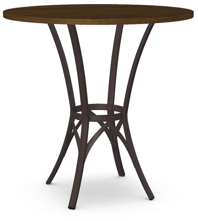 Walnut veneer bar height tabletop with a 42" diameter.