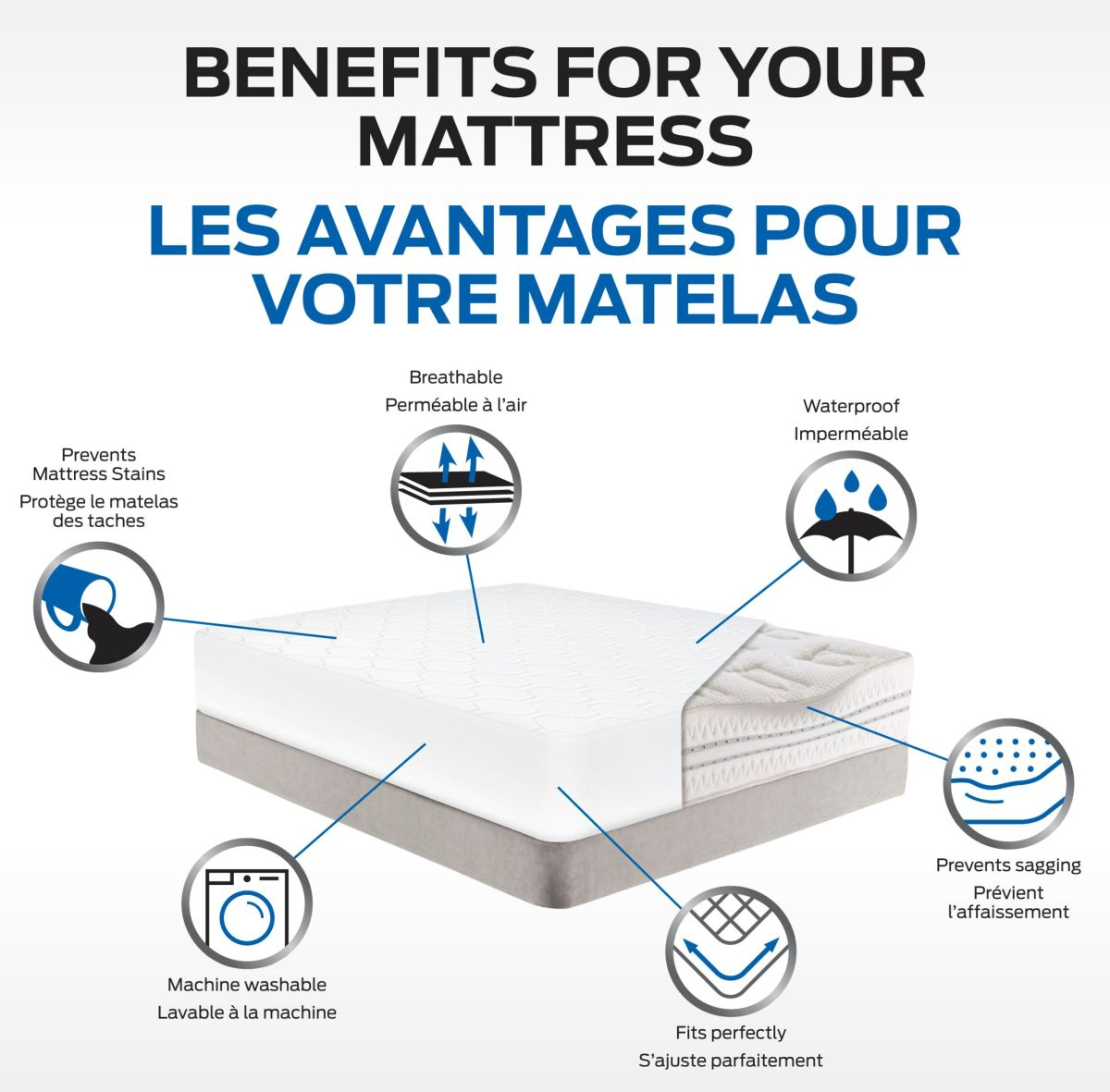 Comerco 6-side Integral mattress protector, 100% waterproof, soft, breathable, 10 year warranty against stains on new mattresses and on mattress protector, including 1 bonus pillow protector for your comfort and your protection.