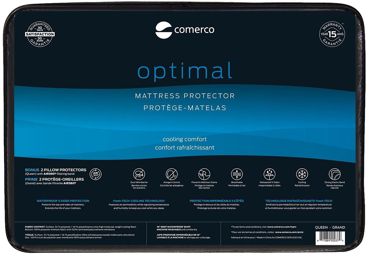 The Comerco Optimal mattress protector offers 5-sided, 100% waterproof and breathable protection for your mattress. With a 15-year warranty against stains, this mattress protector maintains the cleanliness and hygiene of your sleep surface. It features Fresh-Tech technology, for natural comfort that harmonizes with your mattress.Read More