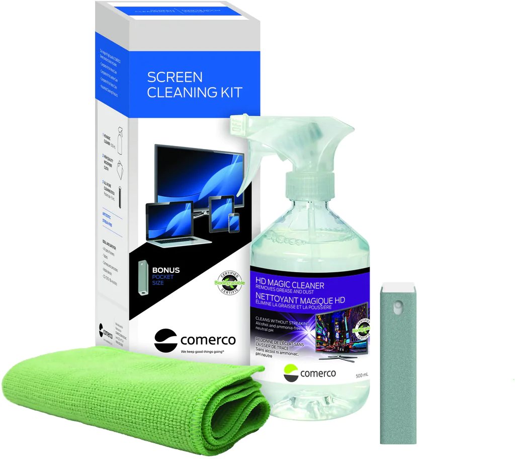The HD Magic Cleaner removes grease, dust and fingerprints while repelling dust. It is safe to use on hard surfaces. This kit includes three essential products to clean all your home and office electronics.Read More