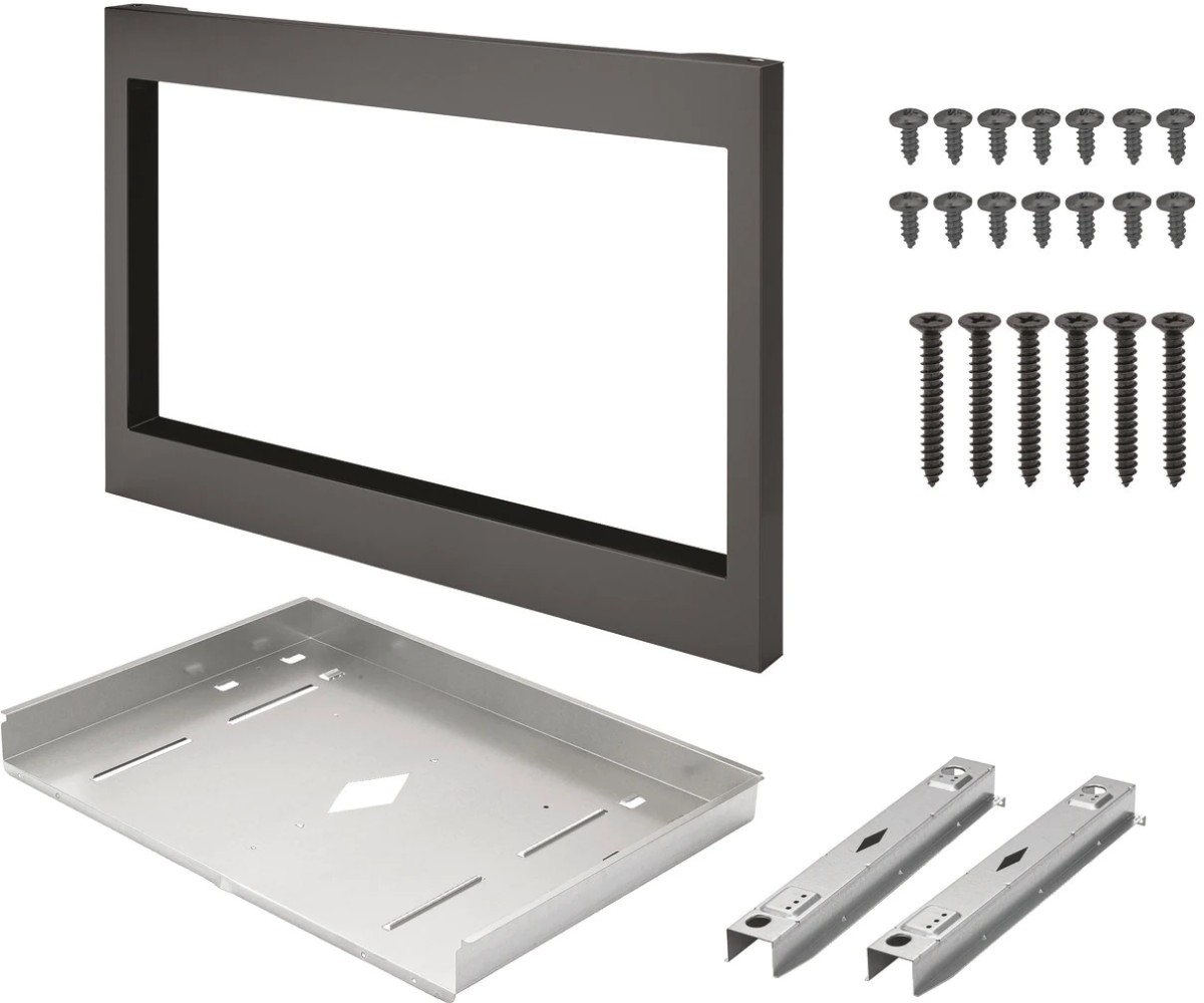 Includes all of the parts and pieces to complete the installation of your built-in microwave, including 1 front frame assembly, 1 exhaust duct, 1 bottom mounting rail and 6 screws.