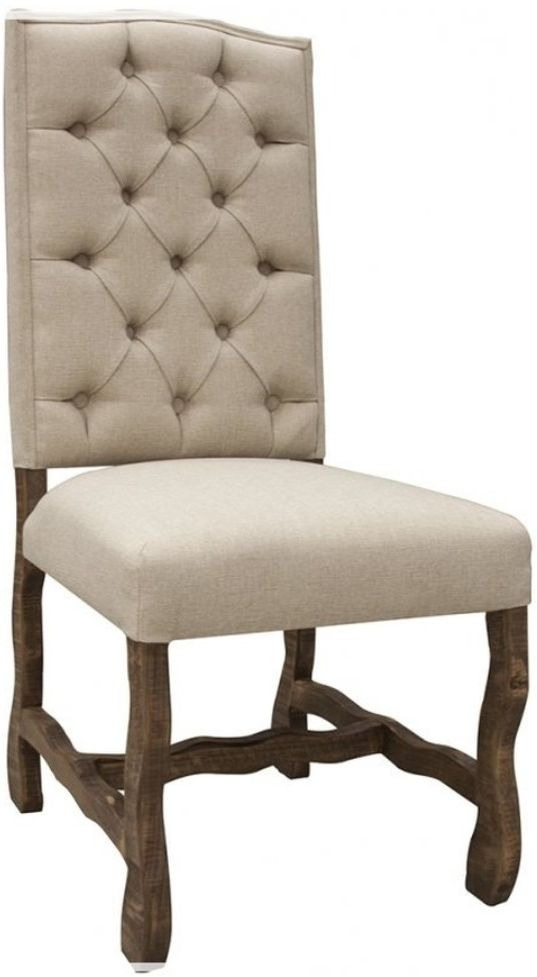 Fabric chair is hand-tufted durable polyester with a linen look.