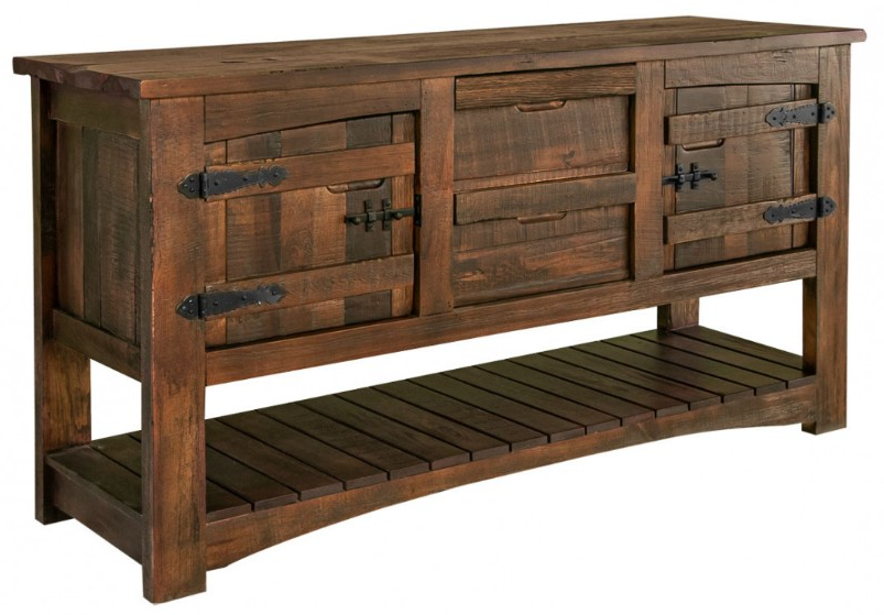 This collection features solid pine frames and multi-wood panels on panels