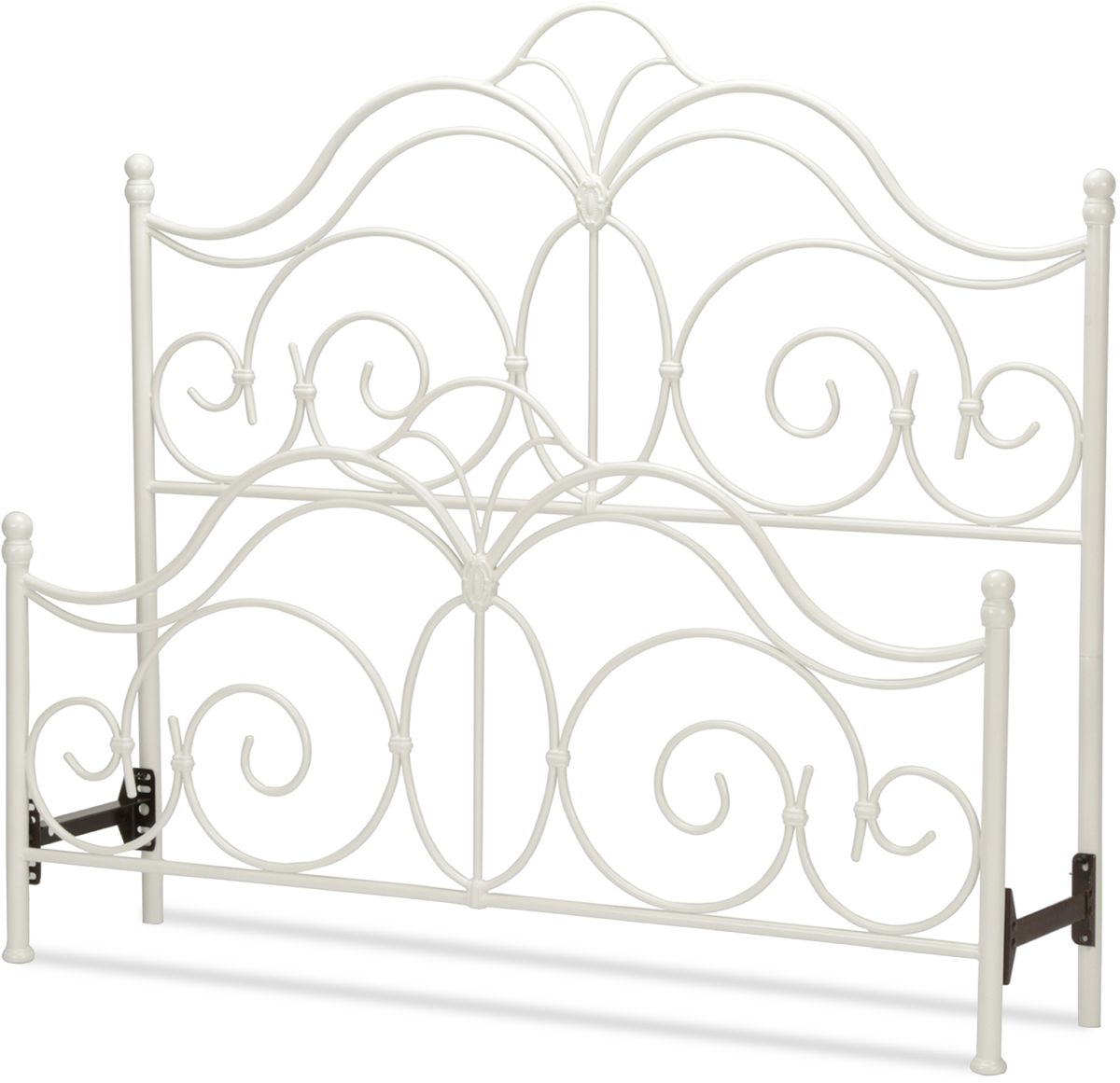 The Rhapsody features soft, pretty curves, making it a lovely focal point for any bedroom. Constructed of carbon steel, the 55-inch grill includes fanciful waves, delicate scrolls, and posts topped with round aluminum cast finials to complement the delightful style. This aesthetically pleasing bed has a Glossy White finish to make a statement with the unique headboard. This bedroom piece is equally at home with bold, bright top-of-bed or soft, muted pastels. A good ornamental (or fashionable) headboard will fuse with the surrounding decor, accent your other bedroom furniture and transform a room from ordinary into something interesting and sophisticated. This includes a headboard, instruction sheet, and hardware bag with everything needed for assembly. The Rhapsody Headboard comes with a 10-year limited warranty against manufacturing defects. A bed frame is not included for box spring or mattress support.