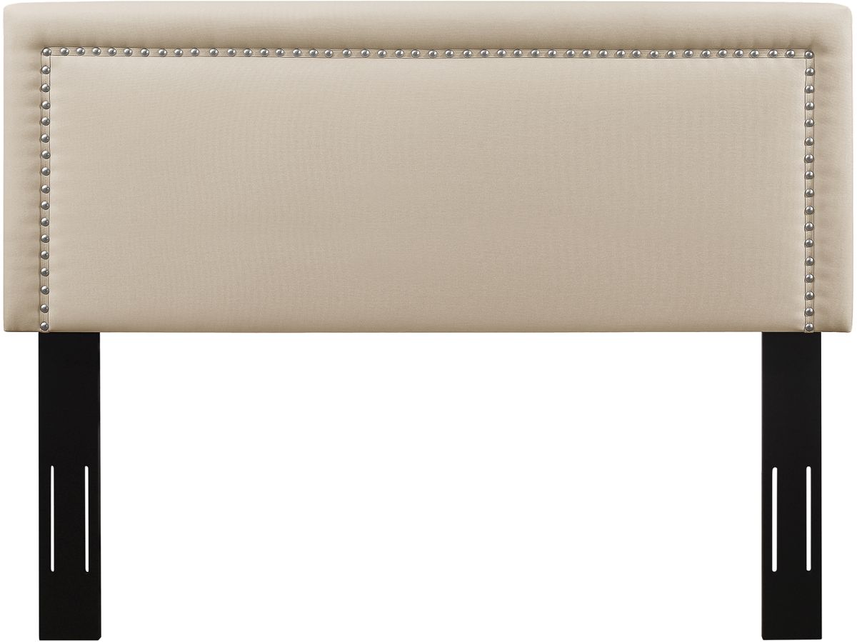 The Tatum is upholstered in a linen fabric that easily fits into any room décor. This headboard features a beautifully detailed border that consists of nickel nail heads. Adding to its versatility, the headboard can be adjusted to 3 different heights: 46", 50", 54"