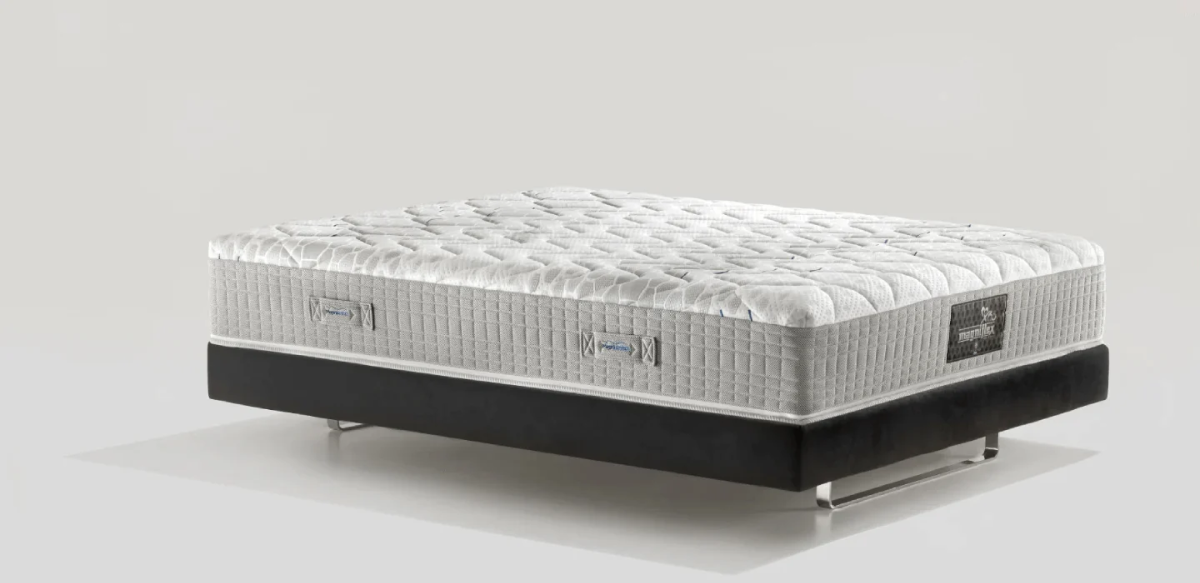 The checkered and stretching workmanship ensures differentiated support in areas and stretching of the spine, as well as ventilation in the heart of the layer. The three layers in Elioform and Eliosoft guarantee ideal support and greater support. The padding is in anatomical Memoform®. The lining, in soft Natural Viscose and thermoregulating Outlast®, absorbs excess heat and releases it when needed. Comfort Medium Firm.