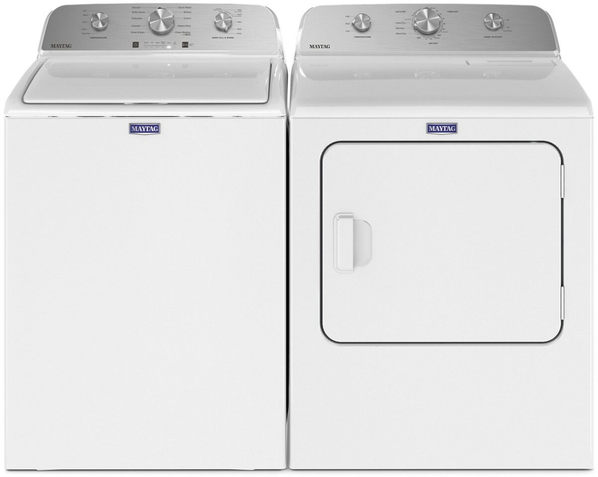Maytag® White Laundry Pair with a 5.2 cu. ft. capacity top load washer and 7.0 cu. ft. capacity top load gas dryer.Read More