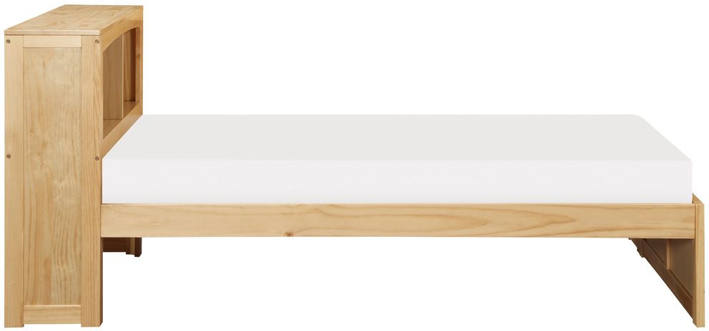 Maximizing sleep space is achieved with the stylish Bartly Collection. This transitional twin bed is featured in a natural pine finish making it an appropriate choice for a number of youth bedroom settings. The bookcase headboard allows for convenient storage within arm’s reach.Read More