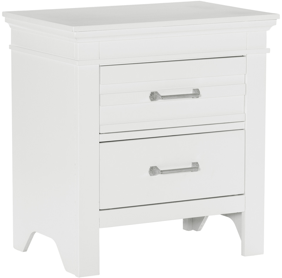 The transitional styling of the Blaire Farm Collection serves as the perfect complement to the rustic aesthetic that inspired the design. The okoume veneer is enhanced by the white finish that covers the nightstand. Fixed handle pull hardware fronts the drawers while horizontal accent on the top drawer lends visual contrast.Read More