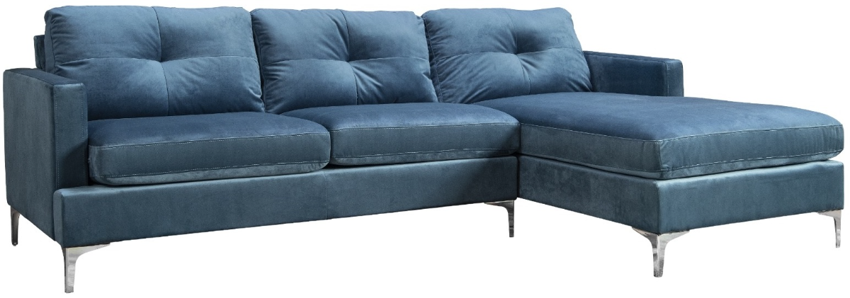 Long-lasting comfort will be yours on high-density foam cushions with pocket coiled springs, atop a sturdy frame. Removable back and seat cushions and soft velvet upholstery in either gray or blue are the perfect finishing touch for the Hamilton, available in left or right chaise configuration.Read More