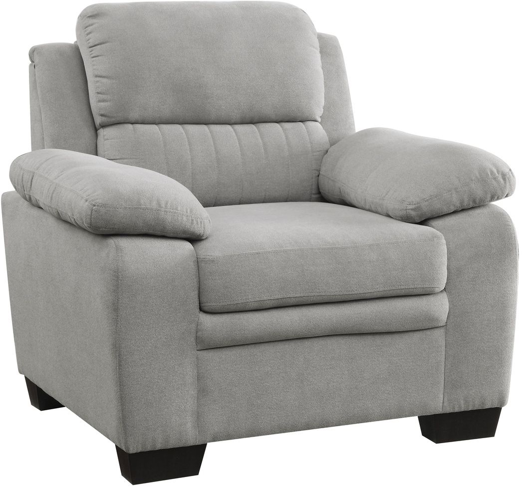 A modern profile serves to lend visual contrast and support to the plush seating and pillow-top arms of the Holleman Collection. The gray textured fabric cover acts as a neutral palette for your decorative preferences.Read More