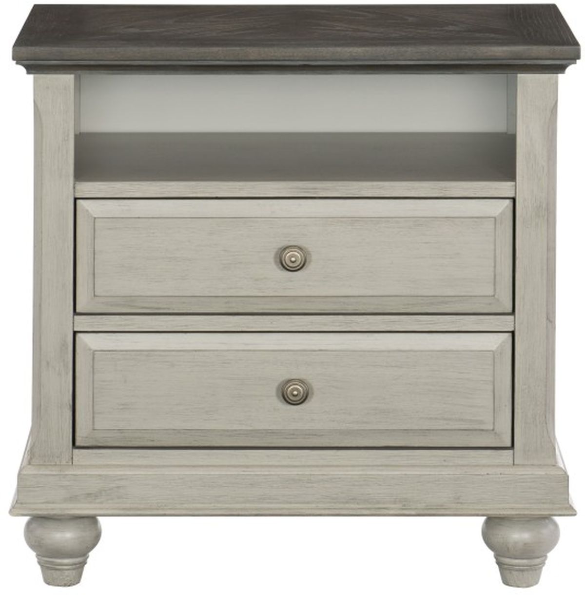 In nod to modern farmhouse design, the Mossbrook Collection features a classic profile that will be a perfect addition to your home’s décor. The pine solids and oak veneer of the collection feature a light gray finish, subtly highlighting the wood’s grain. The dark brown top of the nightstand provides contrast, as do the dark metal pulls that front the drawers. An open display shelf lends additional functionality to the piece.