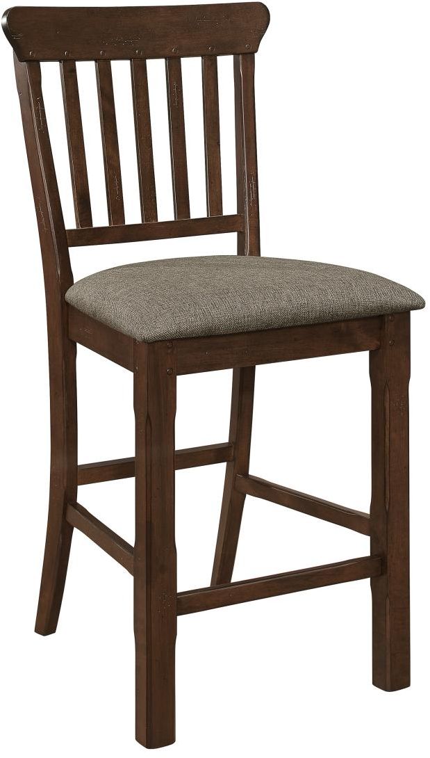 Transitionally styled with a burnished brown finish, the Schleiger Collection features bold accenting and functional storage options. A sturdy storage base supports the metal and rivet banded counter-height table top, with swivel chairs and bench flanking allowing for versatile seating options for this industrial influenced collection. Metal and rivet banding with nail head accent also features prominently on the open hutch and buffet, and mobile kitchen cart that are available for this collection.Read More