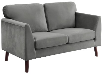 Created for a modern space, the Tolley Collection’s vibrant hue and streamlined profile will perfectly accent your home’s living room. The love seat is supported by dark brown finished wood legs that complement the gray velvet upholstered cover.Read More