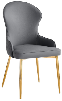 Modern glam meets renaissance royalty with the gold accenting of the Venus collection. This beautifully appointed dining chair is a work of art thanks to its contemporary profile and gorgeous finishes. Grey faux leather upholstery complements the gleaming gold angled legs, while foam padding guarantees a comfortable dining experience.Read More