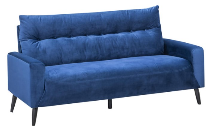 Low square arms and angled exposed legs bring some Mid-Century Modern flair to the Veronica's profile, just as luxurious navy velvet upholstery and button tuft detailing give it a timeless sophistication worthy of any salon. Also available in charcoal velvet.