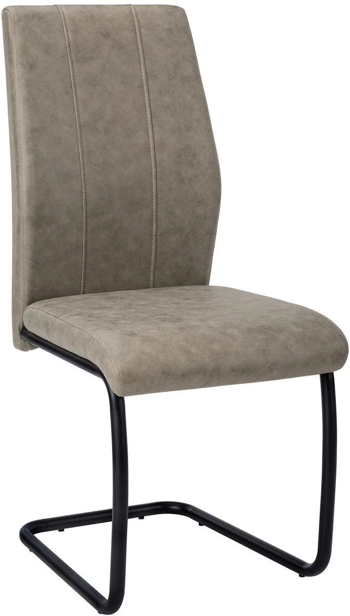 Supported by a solid U-shaped black metal base, these kitchen chairs are upholstered in a taupe faux-suede fabric with two vertical rows of stitching for added elegance