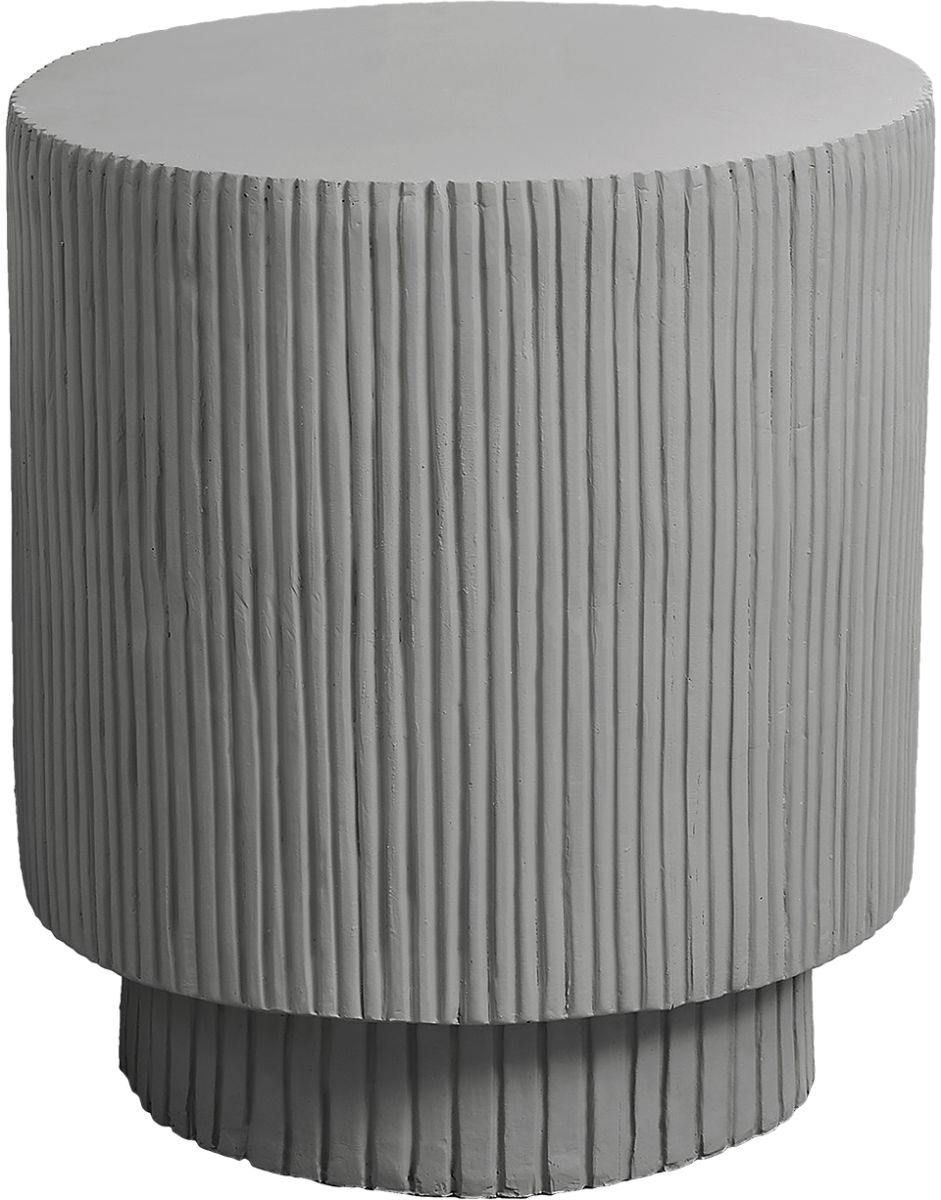 This 25"h indoor or outdoor accent table in a chic grey finish boasts a contemporary ridged design, perfectly uplifting your living room, bedroom, or patio space with modern elegance.