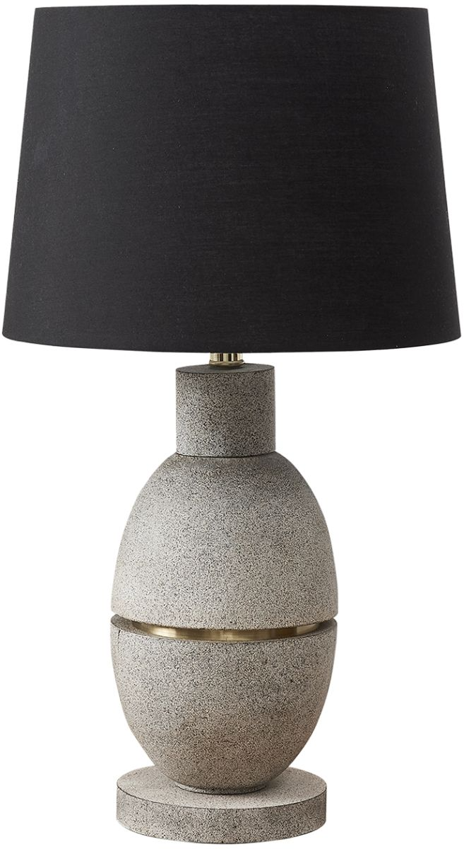 Transform your room into a stylish haven with this 25"h table lamp in a natural looking grey resin resting on a matching base and topped with a soft black shade. This beautiful piece of lighting is designed to brighten any corner of your home, whether placed on an end or side table, a nightstand, or console table.Read More