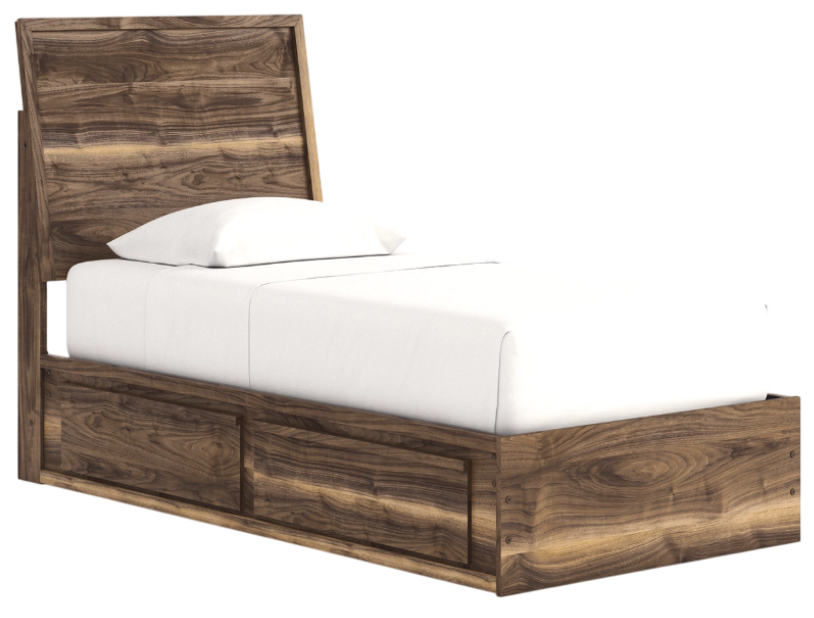 Nostalgic style, retooled for today’s trends. This twin panel bed with storage puts an elevated twist on mod aesthetics. Its warm brown tones reflect the mid-century vibes you love, while the simple panel design incorporates contemporary motifs. Ultra-spacious storage in the footboard keeps clutter out of sight.Read More