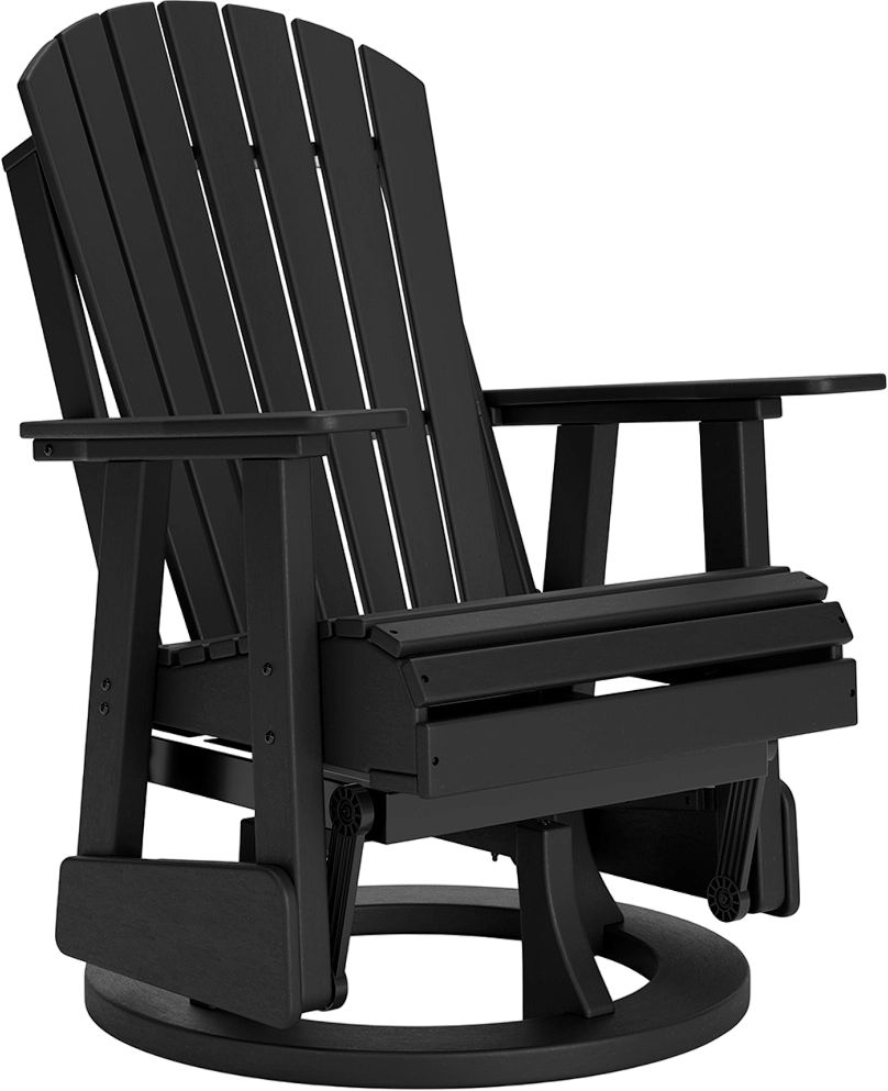 Drift away from everyday worries and into outdoor bliss with this swivel glider chair. Dressed in a smart black, the Adirondack-inspired design has a contemporary feel. It weathers sunny summer days and cozy winter nights with durable Mega Tuff™ HDPE material.Read More