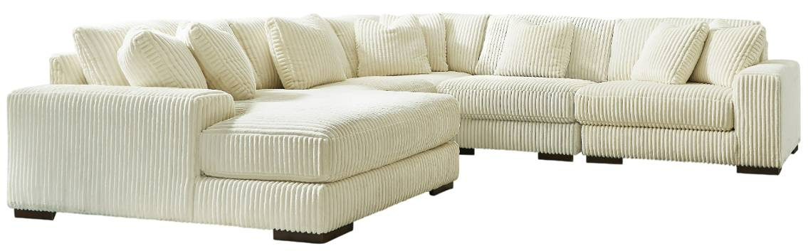 Plush and posh. Showcase your eye for on-trend texture with the statement-making cord upholstery of this sectional with chaise. Its stunningly soft fabric entices in an ivory hue, complementing contemporary color palettes. This cozy living room centerpiece highlights your high-end approach to comfort and style.Read More