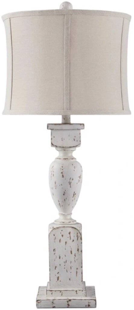 This table lamp takes a classic approach to tasteful lighting. Its detailed base ushers an air of elegance into your space with a graceful turn design. Outfitted with an antiqued white finish, it's right at home in traditional spaces. Pair with the matching floor lamp (sold separately) for double the style.Read More