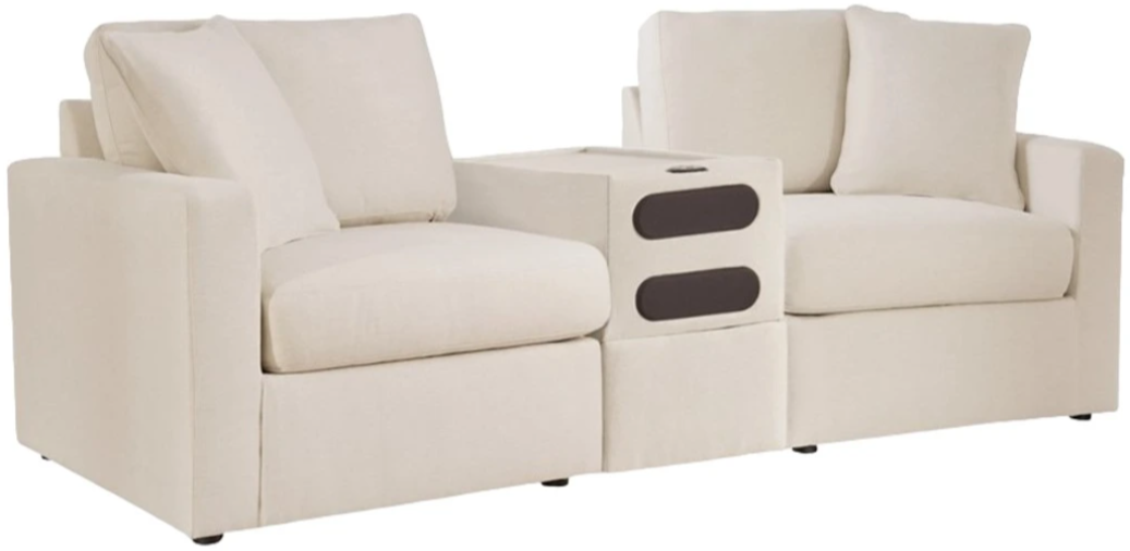 Includes 3 Modular Pieces: Left-arm facing corner chair, audio console with storage and right-arm facing corner chair
