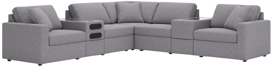 | Sectional Features | Console w/Storage, USB Ports, Throw Pillows Included, Stain Resistant |