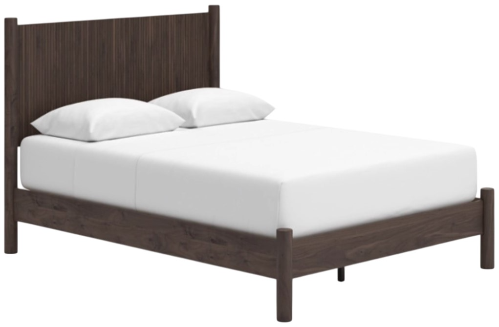 Crafted with both form and function in mind, this queen panel platform bed brings a dash of retro-cool character to your modern boho aesthetic. Reeded accents add an on-trend touch to its classic silhouette. Warmly welcoming with a rich brown finish, the bed pairs well with muted hues, earth tones and other neutrals alike.Read More