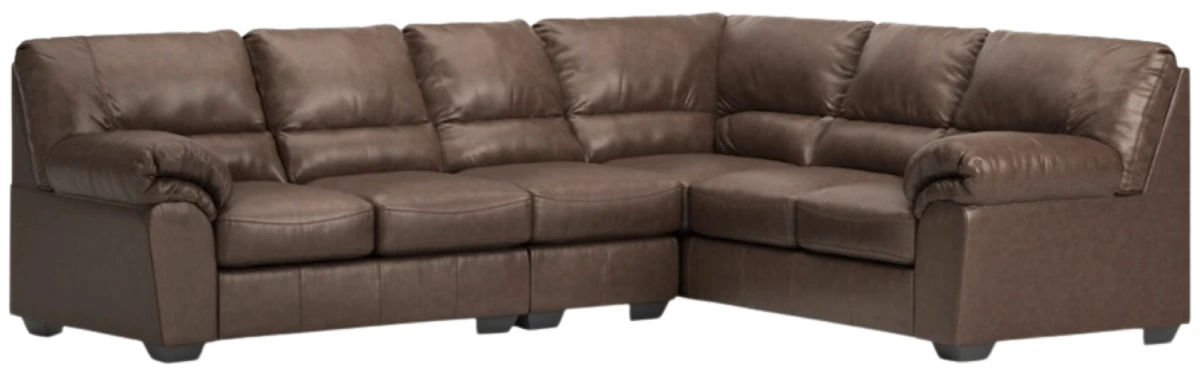 Modern comfort never looked so good. Sporting supremely soft yet durable cushions accented with high-fashion jumbo stitching, this stunning sectional is the ultimate choice in comfortably cool, contemporary style. Its umber-hued faux leather indulges with an upscale feel and wows like the real thing.Read More