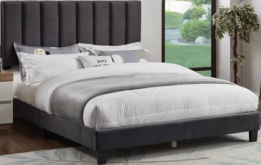 Create the perfect, contemporary styled sleeping space with this adjustable headboard and bed. Deep, vertical channel tufting offers a clean look, while the neutral colour velvet fabric ensures your bed will match with most design concepts. The adjustable headboard fits whatever height your mattress requires.Read More