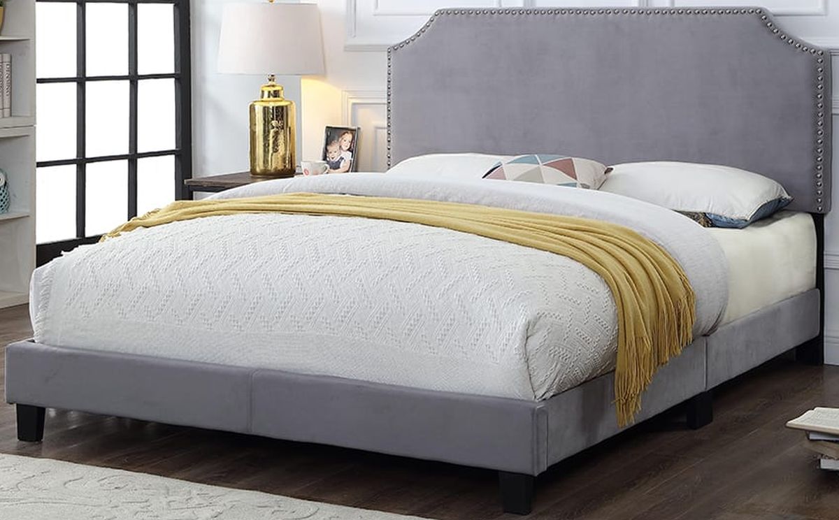Bring luxury and style to your bedroom with this velvet fabric, platform bed- featuring scallop-edge corners and nailhead trim. The adjustable (43?-57?) headboard fits the height of whatever your mattress requirements.Read More