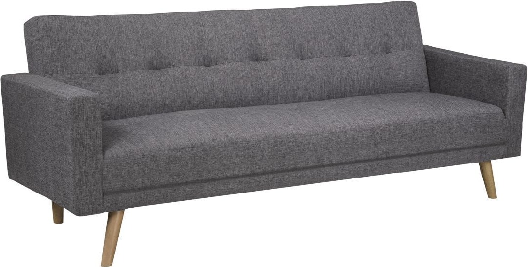 Enjoy contemporary style with this "Klick Klack" sofa bed in your living room. Covered in a grey linen-style fabric, its padded track arms and button tufted seating add to the casual styling.Read More