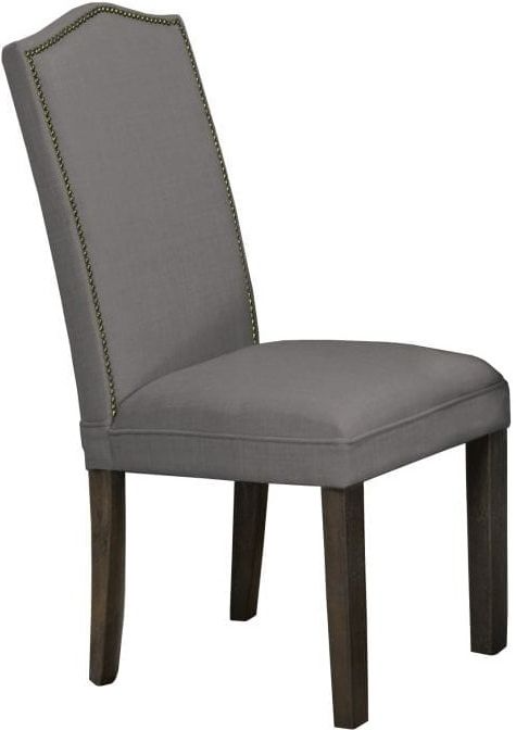 A perfect addition to any dining room, this parson chair is upholstered in grey linen-style fabric, and offers a contemporary, sophisticated option. Includes bronze, nail head trim and extra-padding for greater comfort.Read More