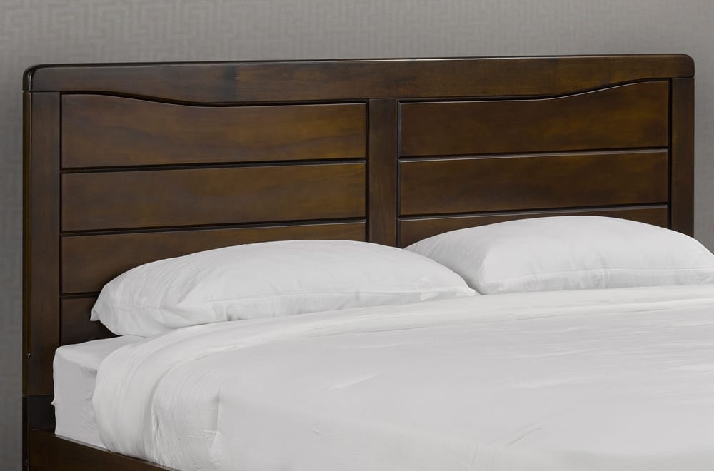 Clean lines and neutral colour ensure this headboard will fit within your bedroom design. With etched panels and a dark walnut finish, you'll be sure to add a bit of sophistication to your bedroom. Headboard easily attaches to most beds.Read More
